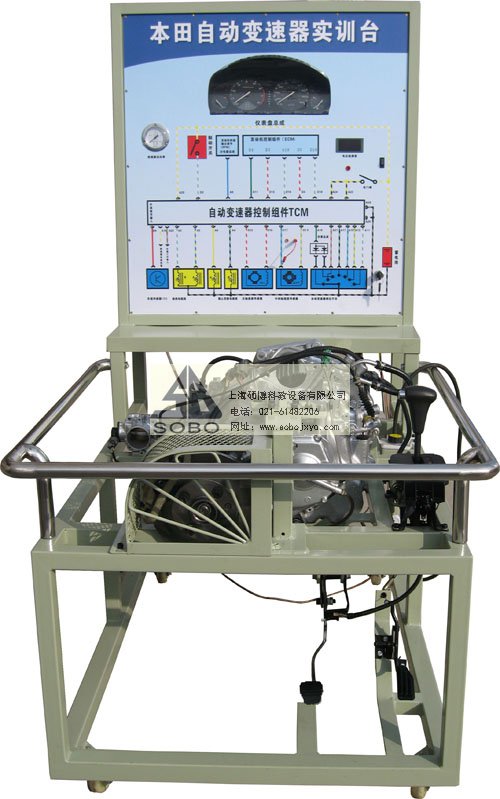 本自動變速器實訓(xùn)臺是本公司采用日本本田公司自動變速器為適應(yīng)汽車教學需求而研制的,該實訓(xùn)臺由電控變速器(八成新)、操作顯示面板及發(fā)動機彩色電氣原理圖電腦控制柜、可移動式臺架(萬向腳輪)、驅(qū)動系統(tǒng)(腳踏式油門踏板)變頻電機驅(qū)動、剎車系統(tǒng)(腳踏液壓盤試剎車)、啟動系統(tǒng)(電門鎖方式啟動)、車速傳感器、電磁閥執(zhí)行器、原車電腦、具有發(fā)動機運轉(zhuǎn)及顯示(轉(zhuǎn)速.車速.檔位)、液壓油壓力顯示表(顯示換檔過程油壓)、自動變速器電磁閥工作指示LED燈、原車診斷座、進行失速實驗等、故障設(shè)置區(qū)可設(shè)置8路故障(老師設(shè)置任一路線路故障)、故障排除區(qū)(學生通過各種儀器、儀表、)在面板上用專用排故線連接排除故障、傳感器信號模擬等多項功能、具結(jié)構(gòu)緊湊、操作方便、安全可靠、教學直觀、是汽車自動變速器實物教學不可缺少的實驗室設(shè)備之一。