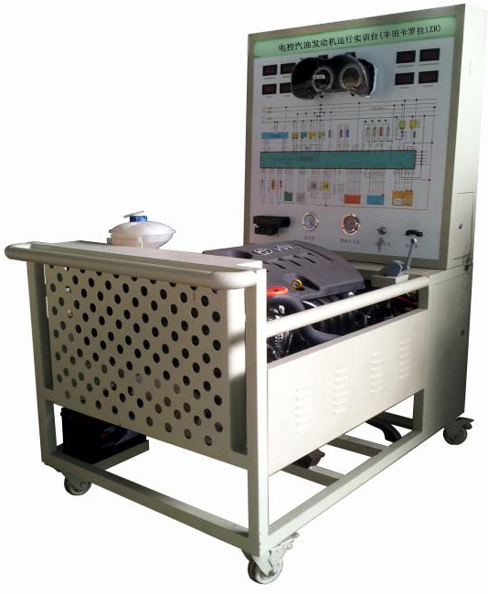 該設(shè)備采用翻新豐田卡羅拉1ZR電控汽油發(fā)動(dòng)機(jī)總成及運(yùn)行附件的固定臺(tái)架和運(yùn)行檢測(cè)控制面板臺(tái)架兩部分組成。