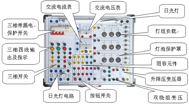交流電路實驗箱 主要是進行"電工學(xué)""電路原理"中的強電部分實驗,如單相交流電路、三相電路、日光燈電路實驗。本實驗箱由模塊單元和元件庫相結(jié)合的板面構(gòu)成,全部采用歐洲標(biāo)準(zhǔn)的安全插座和安全實驗導(dǎo)線, 連線方便,接觸可靠,而且壽命長、效率高,有效預(yù)防觸電隱患。實驗面板上印有元件符號及主要參數(shù)便于學(xué)生識別。實驗箱結(jié)構(gòu)緊湊實用直觀,安全可靠,能有效培養(yǎng)學(xué)生的動手能力,維修方便、簡捷。可滿足各類高、中等院校及職業(yè)技術(shù)類院校開設(shè)的電工典型實驗。