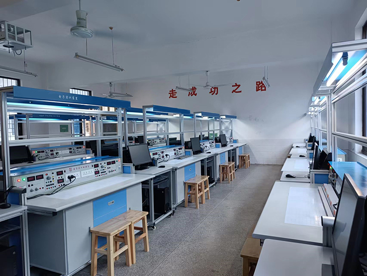 應用電子技術實驗室、應用電子實訓室設備隸屬于電氣工程與自動化院校,應用電子技術實驗室設備在學校的科學研究、學科建設、人才培養(yǎng)等方面發(fā)揮著重大作用。中心貫徹學校“以本為本”建設具有特色的一流本科教育理念,緊密圍繞社會經濟發(fā)展需求,遵循教育規(guī)律,堅持“立足教育、面向全國、服務院校、服務行業(yè)”的辦學定位,適應人工智能、電氣自動化、電子科學等科技發(fā)展,融教學、科研和生產為一體,強調理論與實踐密切結合,突出應用電子特色,培養(yǎng)應用電子、人工智能新技術應用及開發(fā)能力,為電氣自動化、人工智能、應用電子相關行業(yè)培養(yǎng)德、智、體、美、勞全面發(fā)展,具有扎實基礎理論、寬厚專業(yè)知識、較強實踐能力和良好職業(yè)素養(yǎng)的應用型工程技術人才。中心突出校企深度合作長效機制,形成“專業(yè)特色與行業(yè)需求相融合、雙創(chuàng)教育與專業(yè)教育相融合、實踐教育與企業(yè)資源相融合、課內培養(yǎng)與課外培養(yǎng)相融合、培養(yǎng)過程與企業(yè)協(xié)同相融合”的五融合人才培養(yǎng)特色,提高應用電子實踐教學質量。