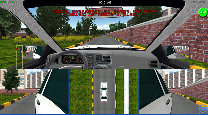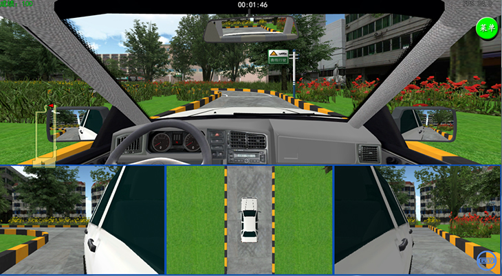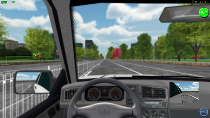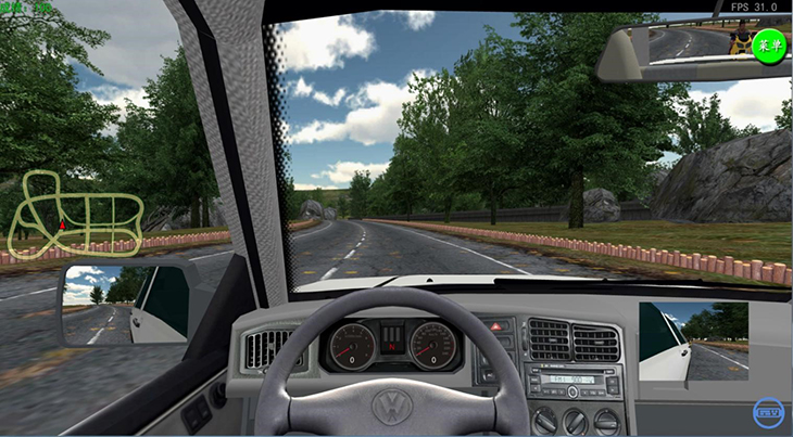 3)具有座艙和顯示器的互動視景系統(tǒng),并具有錯誤駕駛記錄和提示功能;右暰跋到y(tǒng)應(yīng)具備圖形工作站、顯示設(shè)備、音響功放等組成,可實現(xiàn)駕駛員前景140度以上視角的屏幕顯示。