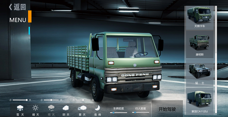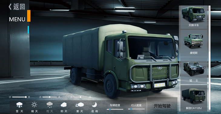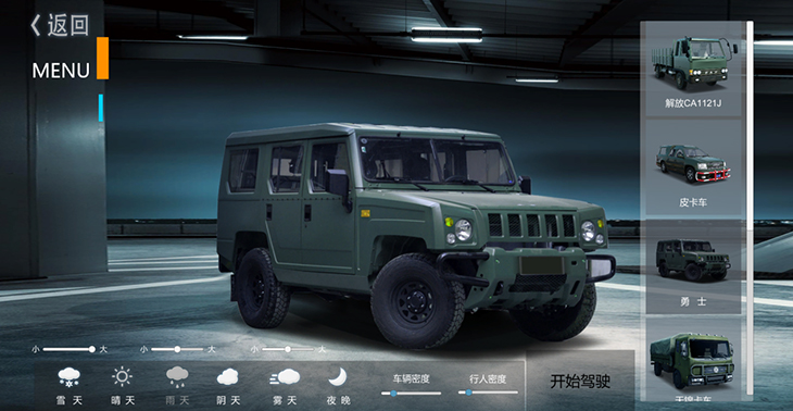 7.1、仿真車模型:10 種典型虛擬車輛模型:東風(fēng)猛士、北汽勇士、 EQ1118、EQ1121、 EQ2102SX2150SX2190、豪濼 ZZ2197、東風(fēng)天錦、大客車等,并可根據(jù)需要拓展、定制個(gè) 性化車輛模型。