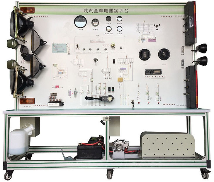 該設(shè)備采用泰安TA4360柴油機(jī)整車電器實(shí)物為基礎(chǔ),充分展示汽車儀表系統(tǒng)、燈光系統(tǒng)、雨刮系統(tǒng)、喇叭系統(tǒng)、發(fā)動機(jī)電器系統(tǒng)、起動系統(tǒng)和充電系統(tǒng)等汽車電器各系統(tǒng)的組成結(jié)構(gòu)和工作過程。