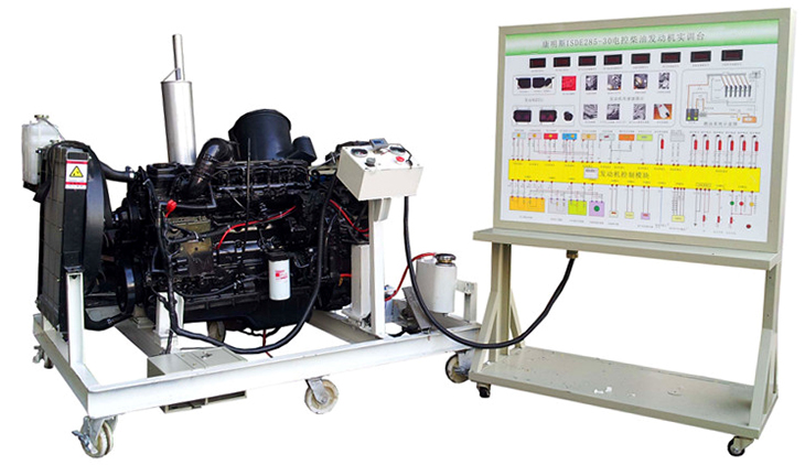 柴油發(fā)動(dòng)機(jī)總成、組合儀表、發(fā)動(dòng)機(jī)控制單元、散熱系統(tǒng)(水箱、風(fēng)扇、上下水管)、排氣系統(tǒng)、進(jìn)氣系統(tǒng)(進(jìn)氣軟管、空氣濾清器總成)、原車電路原理圖板及檢測(cè)端子面板、蓄電池、電源總開關(guān)、燃油箱、油水分離器、油門踏板裝置、可移動(dòng)機(jī)臺(tái)架、臺(tái)架高溫及轉(zhuǎn)動(dòng)等部位加裝防護(hù)裝置等。