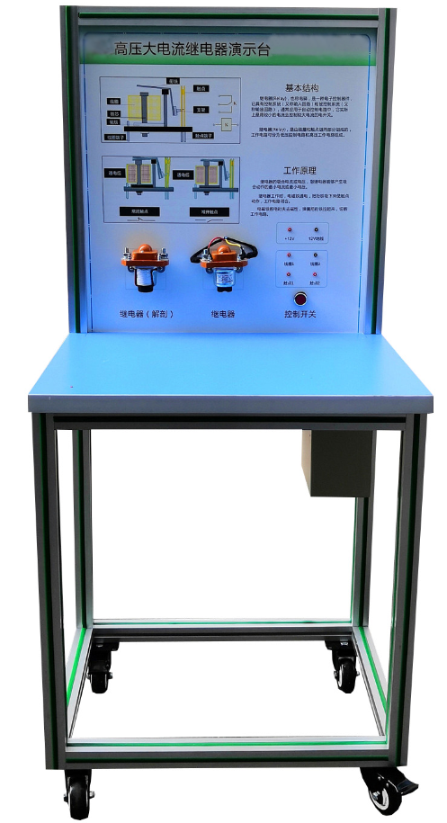 五、基本配置:高壓大電流繼電器EV200AAANA(兩件,其中一件解剖),高壓大電流繼電器EVR200CE(兩件,其中一件解剖),數(shù)字式萬用表,開關(guān)電源,手動開關(guān),可移動實(shí)訓(xùn)臺(帶原理面板)
