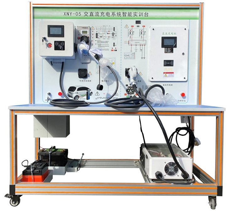 1、設備集成交流充電和直流充電設備裝配與調(diào)試功能,可同時滿足交流充電與直流充電樁裝配、調(diào)試及檢測練習和考核,可通過設備上觸摸屏界面切換交流充電或直流充電。