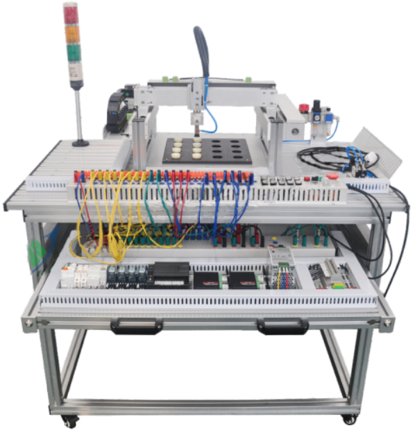 電工電子與PLC實訓(xùn)臺通過上述實訓(xùn)設(shè)備,學(xué)生可在實訓(xùn)室中完成PLC的基本指令編程練習(xí)、三相異步電動機控制練習(xí)、PLC觸摸屏控制設(shè)計練習(xí)以及如流水燈控制、起重機控制、十字路交通燈控制、三層電梯控制等實際設(shè)計項目的練習(xí)。同時,通過外掛電子實訓(xùn)設(shè)備,學(xué)生可以通過實訓(xùn)驗證基爾霍夫定律、疊加原理、戴維南諾頓定理、雙口網(wǎng)絡(luò)、互易定理等電子相關(guān)定理。電工電子電拖PLC綜合實訓(xùn)考核裝置主要承擔(dān)《電工技術(shù)實訓(xùn)》、《PLC及其應(yīng)用》、《模擬電子技術(shù)實訓(xùn)》、《數(shù)字電路實訓(xùn)》、《電力拖動實驗實訓(xùn)》、《電力拖動實驗實訓(xùn)》、《PLC可編程控制器基礎(chǔ)電路實訓(xùn) 》等課程的實驗和實訓(xùn)。電工電子電拖PLC綜合實訓(xùn)考核裝置"教學(xué)做"電工一體化教室以電氣運行與控制專業(yè)必備的電氣設(shè)備安裝、操作、維護與應(yīng)用崗位能力為重點,以照明線路、電動機繼電控制線路和常用機床電氣控制技能為目標(biāo),成為集教學(xué)、培訓(xùn)、服務(wù)和學(xué)生創(chuàng)新活動于一體的高水平綜合性實踐教學(xué)基地。
