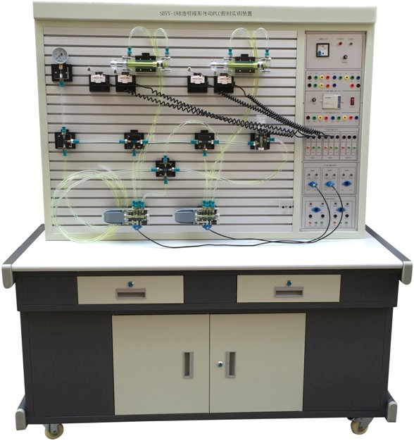 液壓實驗實訓室設備可承擔機電一體化技術(shù)、機械制造與自動化、模具設計與制造、數(shù)控加工技術(shù)以及汽車維修等專業(yè)的液壓與氣動技術(shù)、機電設備維修、機電設備安裝與調(diào)試、機電一體化設計等課程的實驗或?qū)嵱枴? 液壓實驗實訓臺主要承擔機械工程及自動化專業(yè)方向的本、專科液壓傳動的課程實驗。能夠顯著增強學生的認識和理解,同時也能鍛煉學生的動手能力,亦可為社會培養(yǎng)一批液壓技術(shù)方面的專項人才。 液壓實驗實訓臺主要研究方向為液壓關鍵元件設計,機電液系統(tǒng)感知與智能控制,機電液系統(tǒng)先進材料研究。 液壓與氣動技術(shù)實驗室設備主要承擔機電類相關專業(yè)《液壓與氣動技術(shù)》課程的專業(yè)實驗任務。能提供包括液壓泵和控制元件結(jié)構(gòu)拆裝與分析實驗、系統(tǒng)回路控制實驗、系統(tǒng)性能實驗和氣動技術(shù)實驗在內(nèi)的不同類型的實驗。液壓實驗室所開設的實驗和液壓(或氣動)行業(yè)中的液壓系統(tǒng)(或氣動系統(tǒng))的設計、連接調(diào)試、維護等緊密相關,通過機-電-液一體化綜合控制實驗,學生可系統(tǒng)地學習PLC程序設計與調(diào)試、液壓回路的設計與調(diào)試,并且通過力控軟件使相關知識有機地結(jié)合在一起,實現(xiàn)對硬件的動作,從而提高各門課程的綜合應用能力。