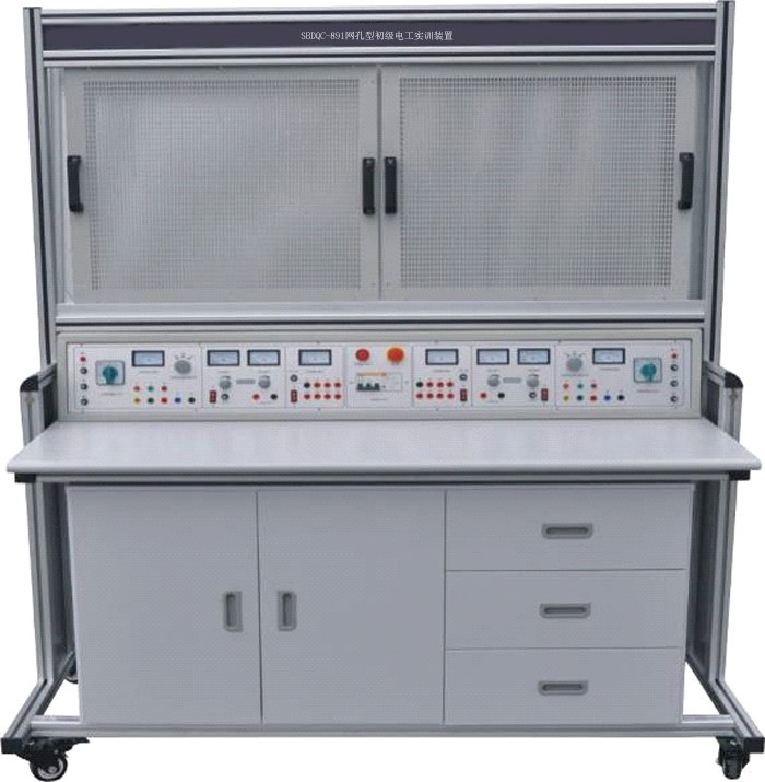 初級維修電工實訓(xùn)室設(shè)備可作為維修電工考核裝置,有可在網(wǎng)孔板上進(jìn)行照明器件及線路的安裝,電工儀表測量線路的安裝、電工儀表測量線路的安裝、配電盤的裝配訓(xùn)練,電動機的控制線路安裝訓(xùn)練。