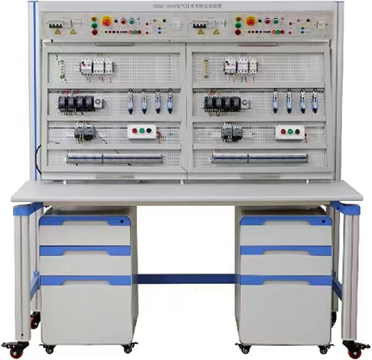 電氣安裝與維修實(shí)訓(xùn)考核裝置是根據(jù)工廠電氣安裝和室內(nèi)電氣安裝等維修 電工和電氣安裝工實(shí)訓(xùn)鑒定要求開(kāi)發(fā)的一種通用實(shí)訓(xùn)平臺(tái)。 適合于各類(lèi)職業(yè)院校 和技工學(xué)校維修電工、 電氣安裝工、水電工等有電氣實(shí)訓(xùn)要求的相關(guān)專業(yè)的作為 公共實(shí)訓(xùn)平臺(tái)使用。 采用鋼制網(wǎng)孔板和鋼制專用型材組接而成,安裝有自鎖式腳輪,方便移動(dòng)和使用。裝 置表面噴塑,色彩穩(wěn)重氣派。電氣安裝與維修實(shí)訓(xùn)裝置設(shè)計(jì)高度以人站在一級(jí)人字梯即可方便操作的高度,既安 全又能使使用者感受到施工現(xiàn)場(chǎng)環(huán)境。 橫向、 叢向?qū)挾群线m, 可以模擬現(xiàn)場(chǎng)線路的轉(zhuǎn)向布置。